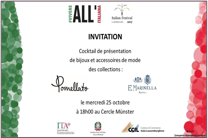 Nell’ambito dell’Italian Festival, giovedi' 5 ottobre, si terrà, presso il Ristorante Fani, la cena di networking organizzata dalla Camera di Commercio Italo-Lussemburghese, l'Accademia Italiana della Cucina e Slow Food Grand-Duché.